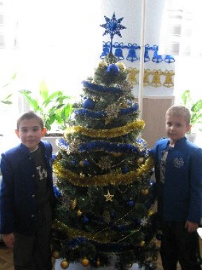 А первыми поздравили всех академиков учащиеся 1-4 классов - в стеклянном переходе представлена их большая коллективная работа «С Новым годом».